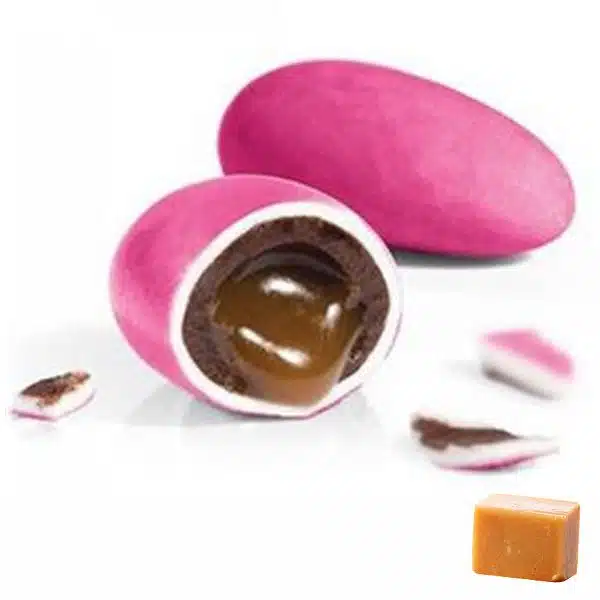 Les dragées Liquicroc Caramel – Grenadine de la Maison Pécou réinventent l’art de la dragée. Sous une coque fine couleur grenadine, se cache un cœur de caramel beurre salé fondant et délicatement coulant, enrobé d’un chocolat noir raffiné. Une bouchée moderne et irrésistible, à la fois croquante, intense et surprenante.