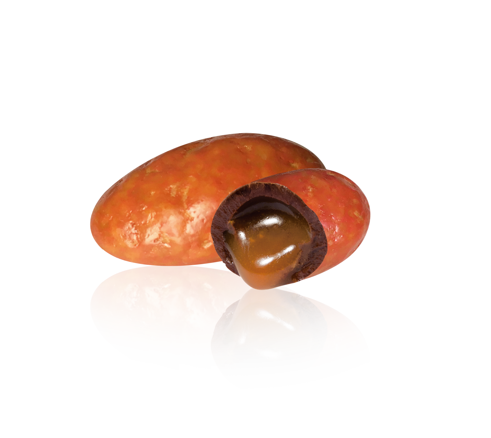 - Enrobage : chocolat noir + fine coque sucrée orange