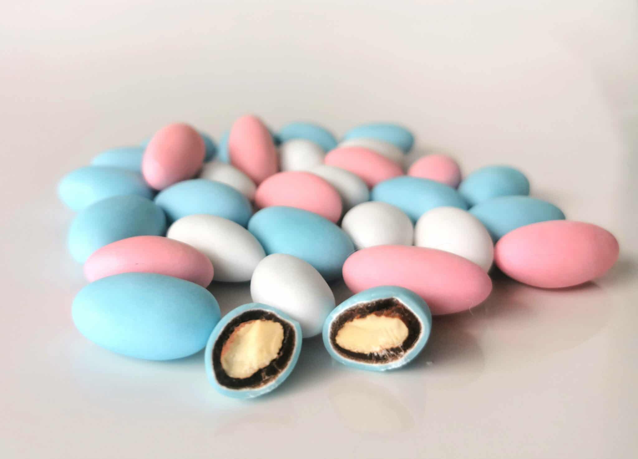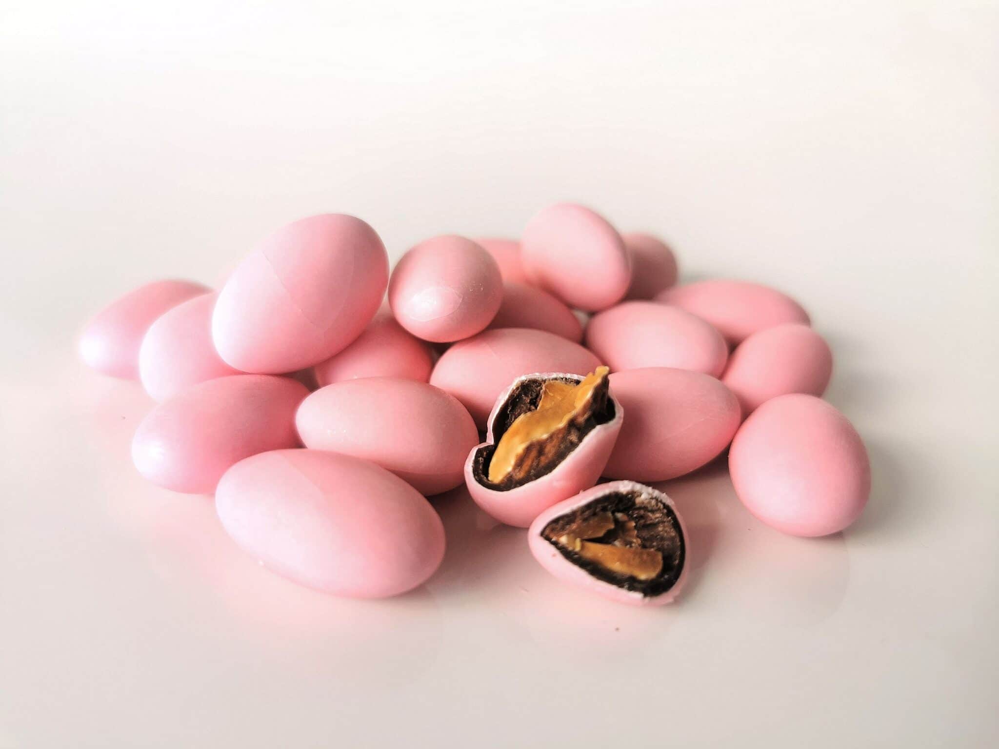 Dragées galet Amande enrobée de chocolat noir sous une fine couche de sucre en coloris rose brillant (existe aussi en coloris rose et bleu). Découvrez un large choix de dragées originales ici.