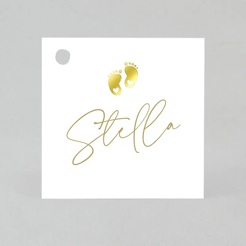 Étiquettes à dragées carré, idéal pour personnaliser vos boites à dragées. Elles sont pourvues d’une perforation sur le coté gauche afin d’y passer un ruban satin.