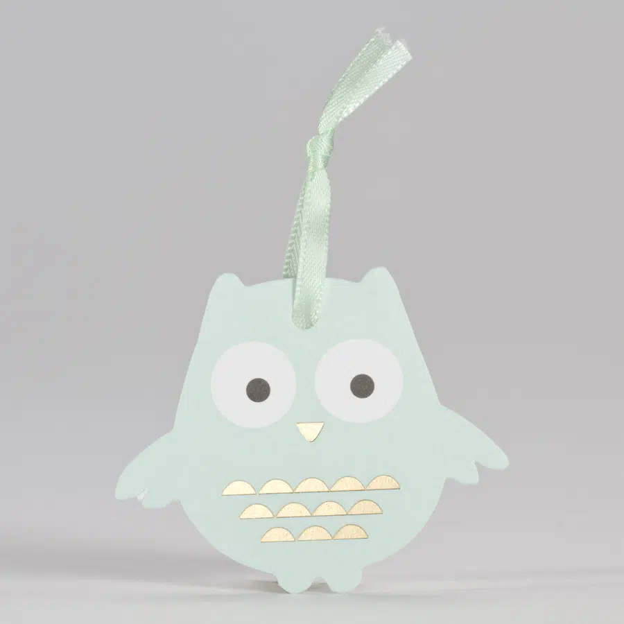 Découvrez ces belles étiquettes perforées vert d’eau et or hibou! Parfaites pour décorer vos contenants à dragées. Personnalisez les en y inscrivant le nom de vos invités.