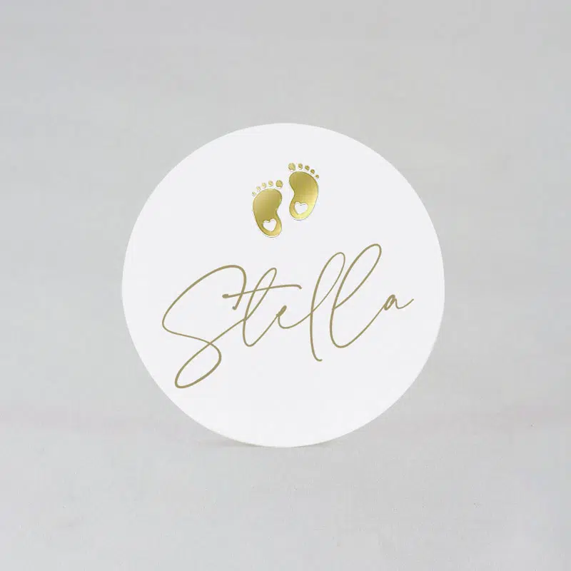 Étiquette autocollante Blanc Petit pied Or – Lot de 8