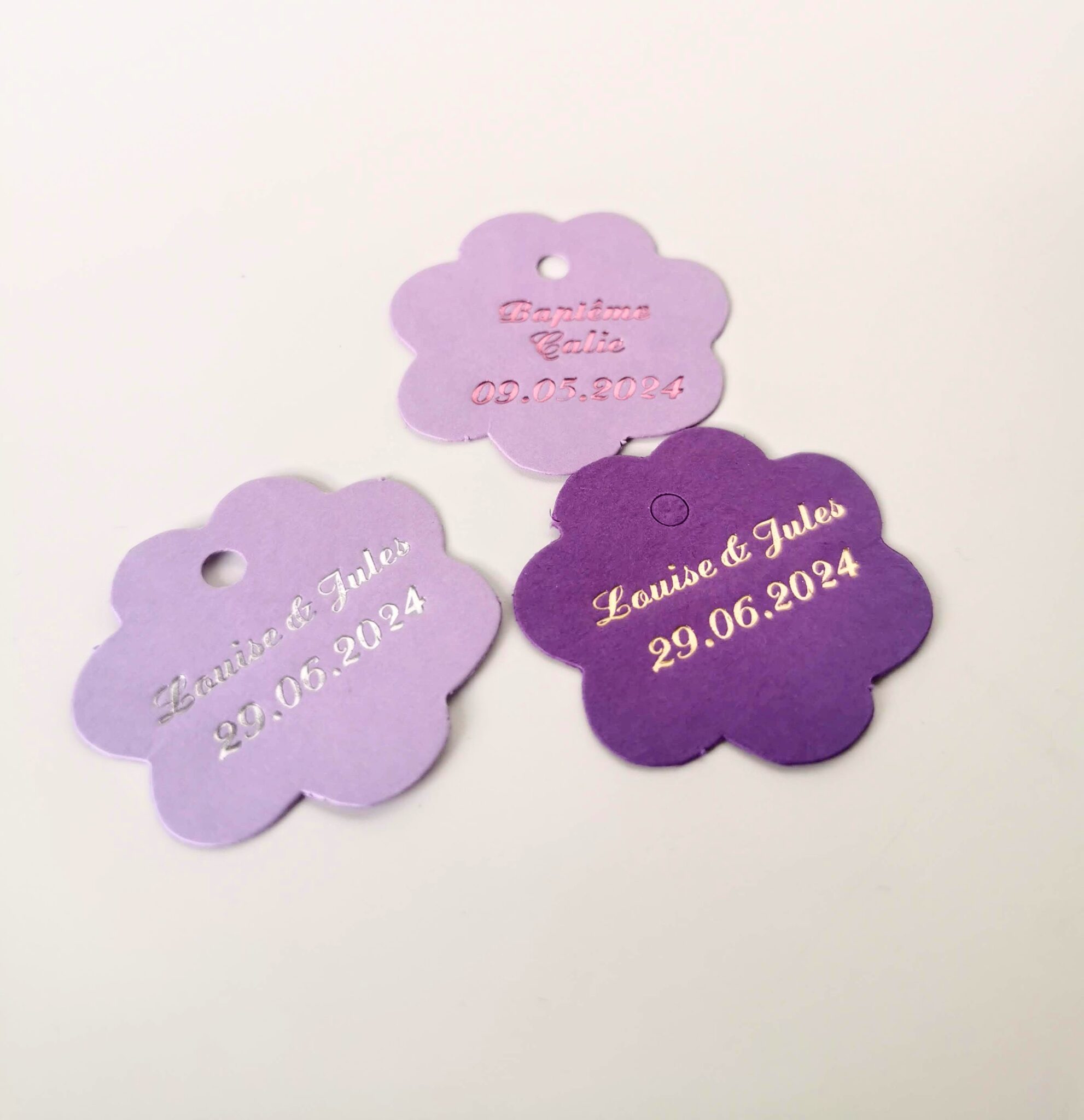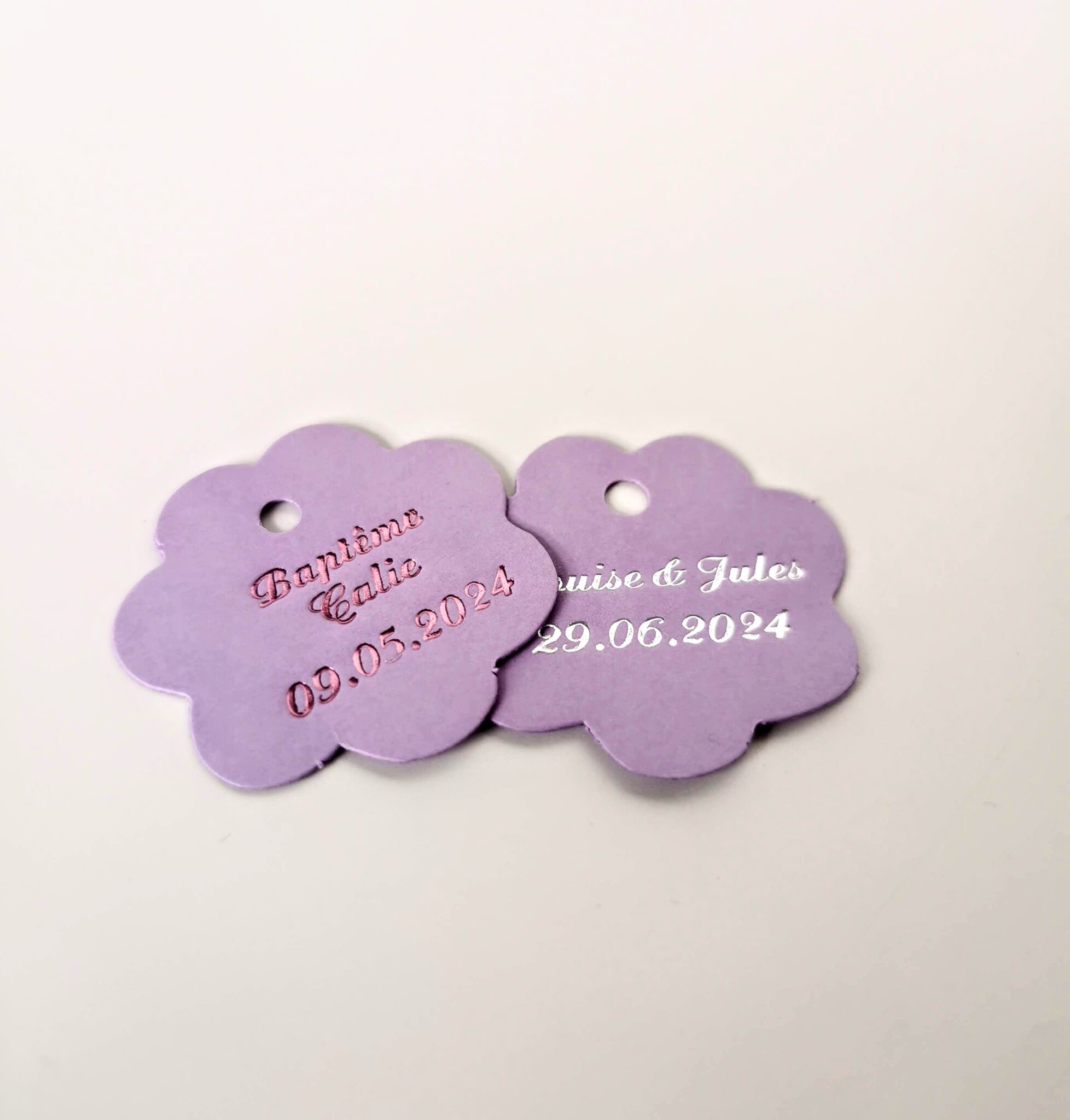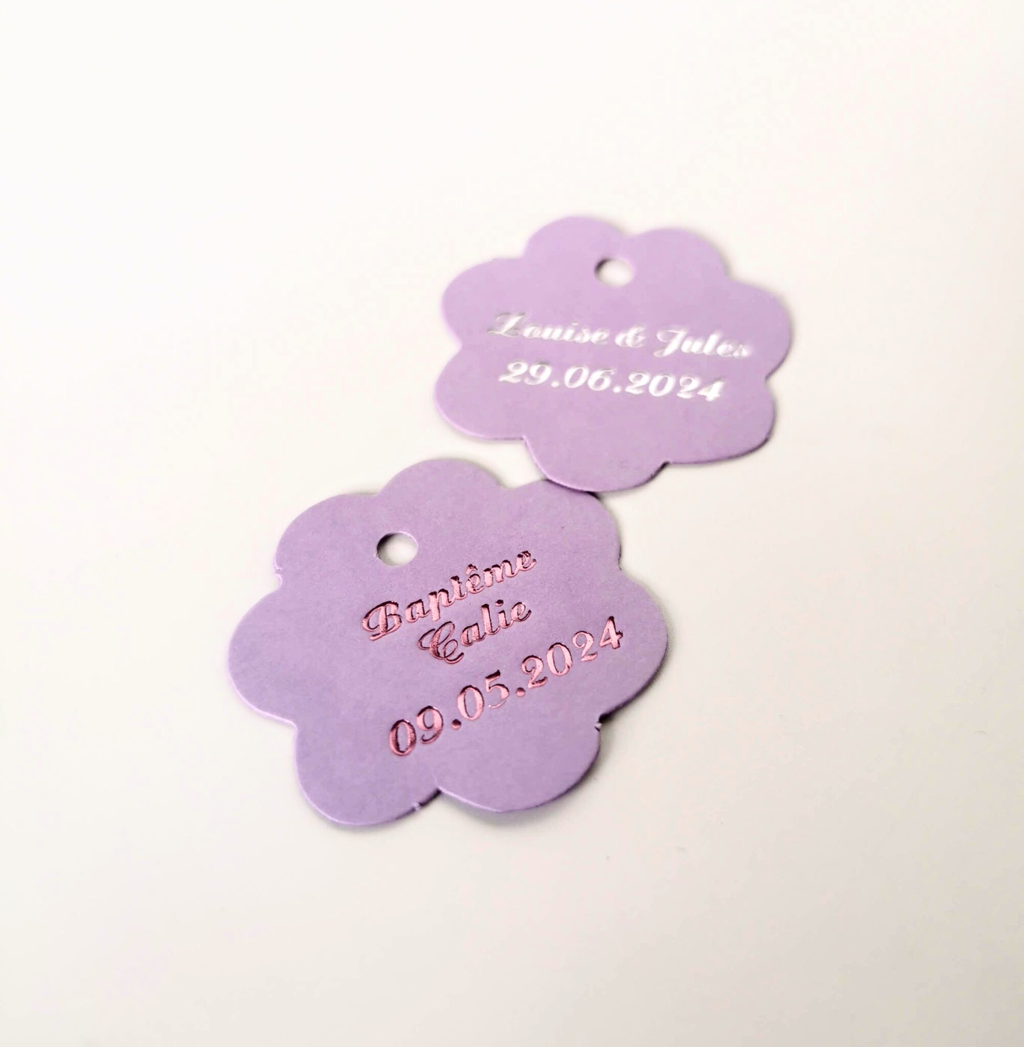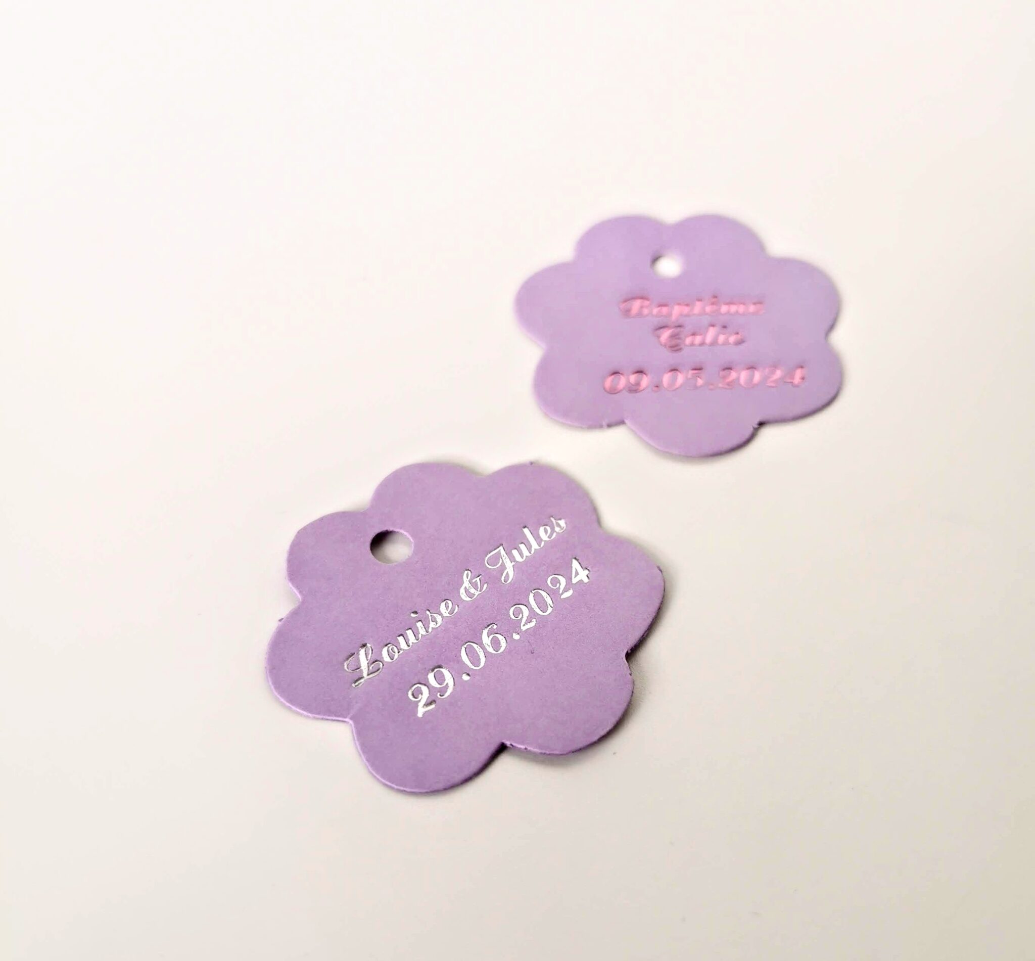 Étiquette dragées fleur, idéal pour personnaliser vos boites à dragées. Elles sont pourvues d’une perforation afin d’y passer un ruban.