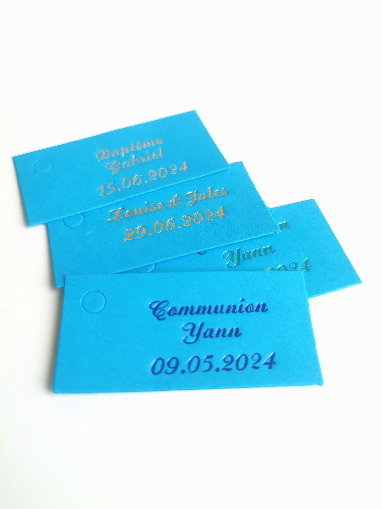 Offrez-vous une expérience unique en choisissant nos Étiquettes à Dragées, une fusion parfaite entre l’artisanat traditionnel et la personnalisation moderne. Faites de chaque détail un souvenir mémorable de votre journée spéciale.