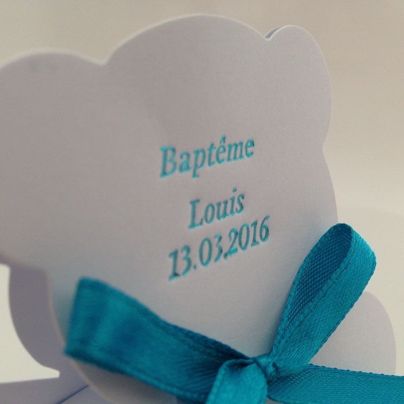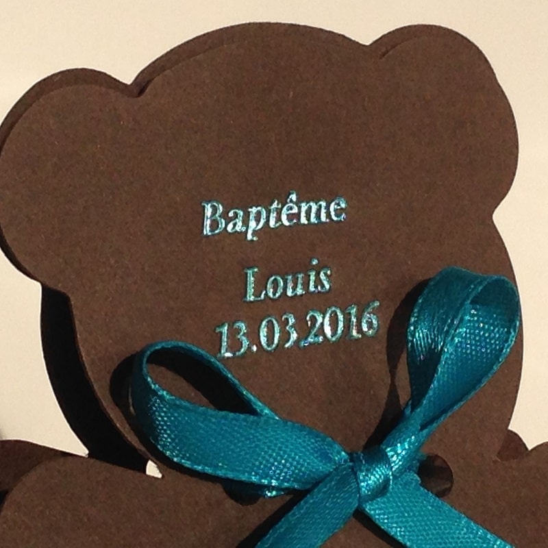 Impression Dorure à chaud de boite à dragées Ourson . Un service artisanale de grande qualité.