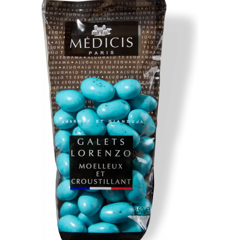 L’alliance surprenante du croustillant et du moelleux – Amande grillée et Gianduja (chocolat au lait et pâte de noisette) – Finition au sucre fin façon galet. Vendu par sachet de 250 gr, soit environ 40 dragées.