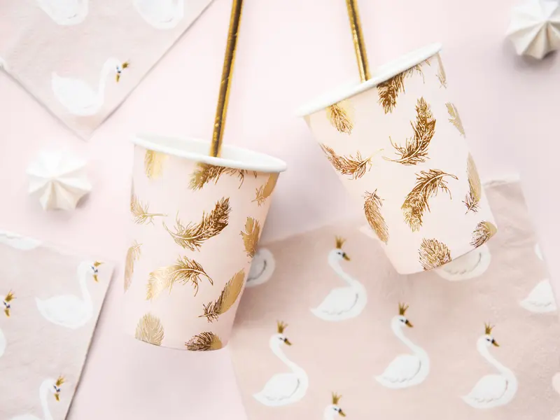 Gobelet Rose et Plumes Or -Lot de 6