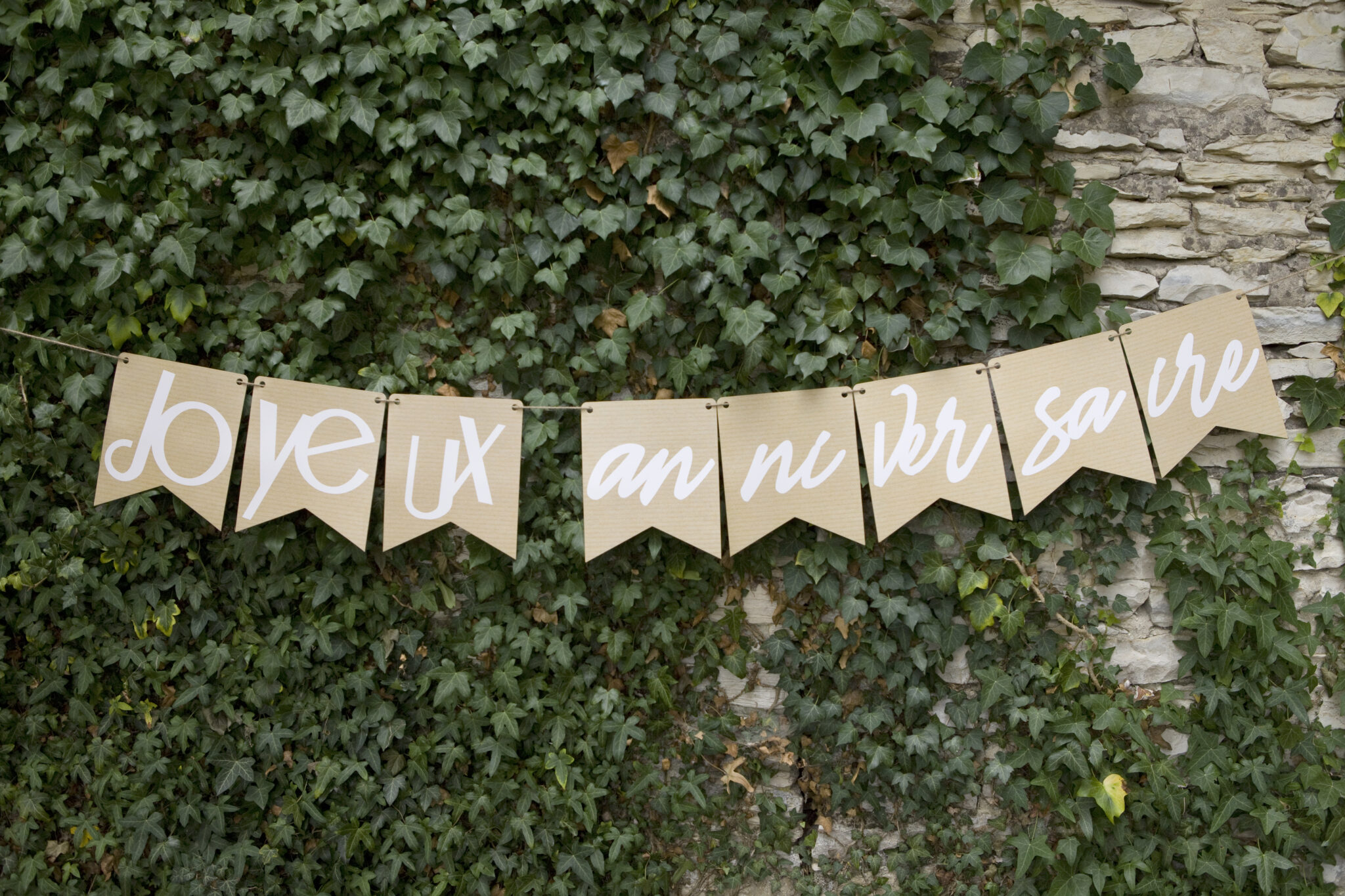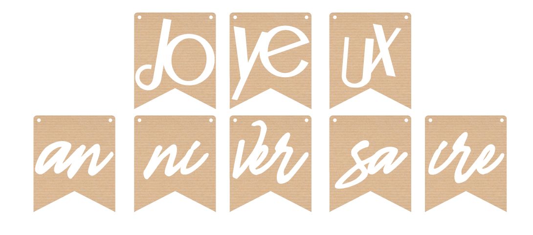 Jolie bannière » Joyeux Anniversaire« en papier cartonné effet kraft avec écriture blanche. Parfaite pour s’accorder avec nos collections sur le thème de la nature