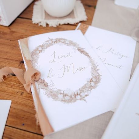 Votre cérémonie approche et vous avez envie que tout soit parfait ? Alors optez pour cette jolie couverture de livret de messe. Pour un baptême, un mariage, une communion…une façon élégante d’inviter vos convives à vous accompagner et à partager avec vous votre spiritualité. Soigneusement déposé sur les bancs de l’église avant le service, ce petit livret de messe permet à chacun de suivre tout le déroulement de la cérémonie religieuse. Vos invités apprécieront de pouvoir suivre facilement chaque étape de la cérémonie religieuse et conserveront ce livret comme un beau souvenir !