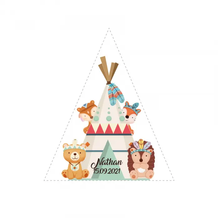 Sublimez vos boîtes à dragées en forme de tipi en vente ici ou scellez vos enveloppes avec ce beau Stickers. Personnalisez ce Stickers avec le prénom et la date de votre enfant.