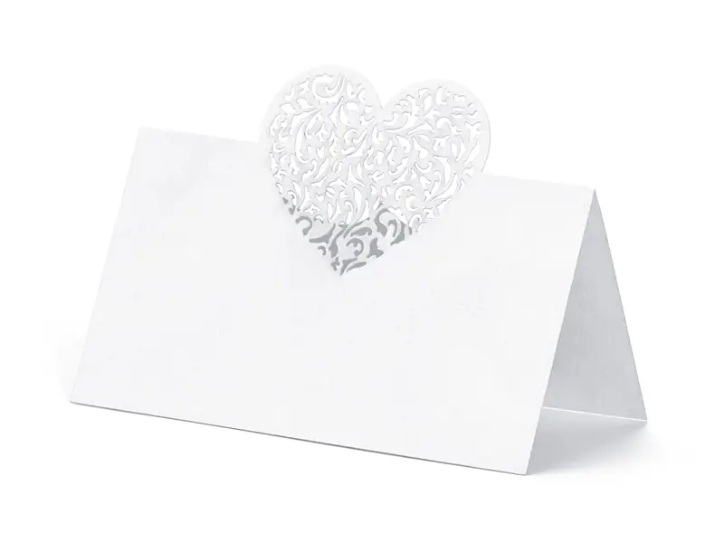 Ces marque-places nacrés  blancs, découpés au laser en forme de cœur  seront idéals pour égayer votre table à l’occasion d’une communion, d’un mariage, d’un baptême ou tout autre évènement.