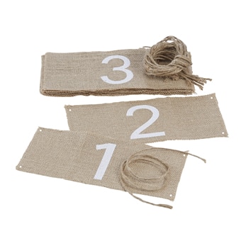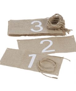 Marque table en jute très utiles pour votre mariage afin de placer vos convives à table avec beaucoup d’élégance. Les marques tables sont numérotés de 1 à 12 et sont livrés avec une cordelette en jute.