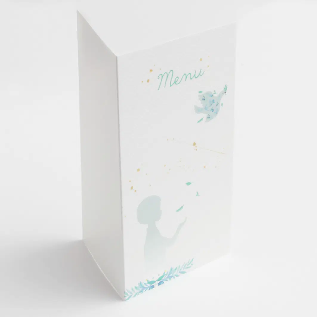 Cartes de menu pour la communion la confirmation ou la profession de foi de votre enfant. Fourni avec encart blanc, facilement imprimable.