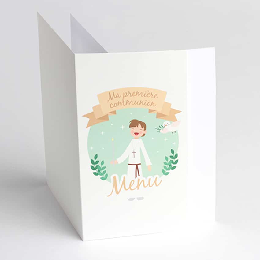 ComparerCartes de menu pour la première communion de votre enfant. Fourni avec encart blanc, facilement imprimable.