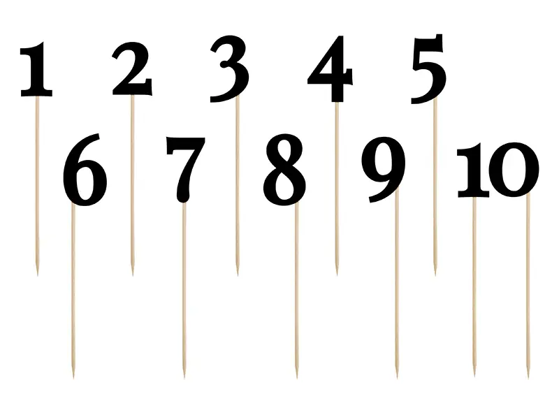 Marque-tables sur pics numérotés, pour placer vos invités à table, ou piquer dans un gâteaux pour un anniversaire.