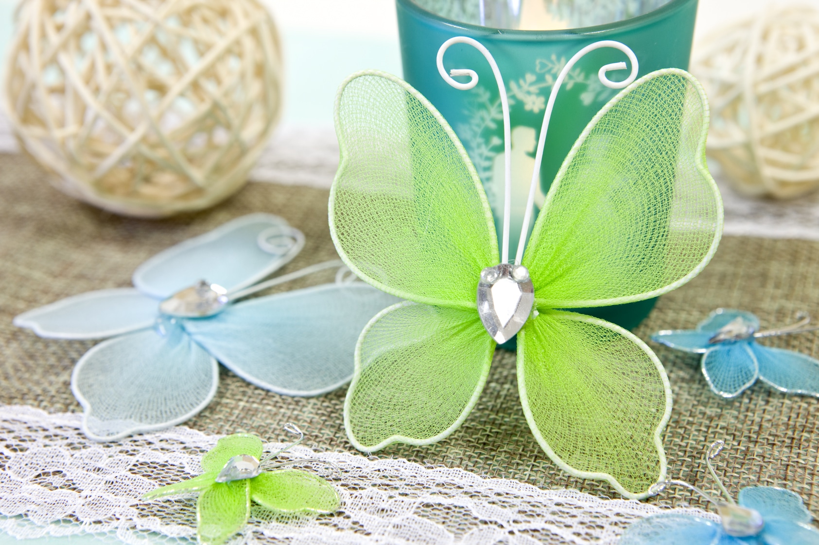 Papillon Vert avec strass – lot de 6
