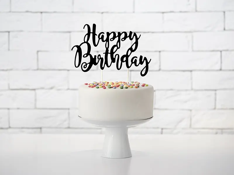 ComparerCe pic noir « Happy Birthday » pourra égayer joliment desserts ou arrangements floraux lorsque vous fêterez votre anniversaire.