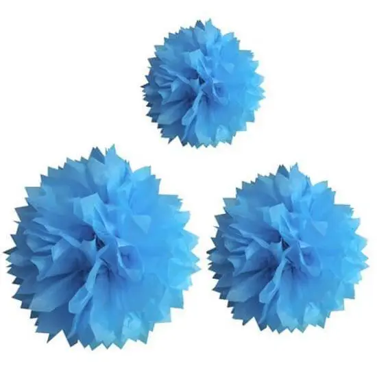Pompon papier de soie – Turquoise – Lot de 3