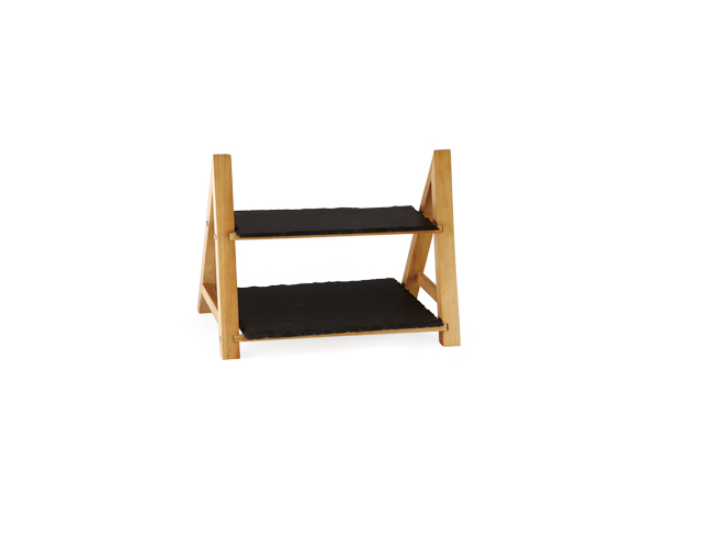 Suport de présentation SERVITEUR ARDOISES 2 ETAGES, en bois et ardoise.