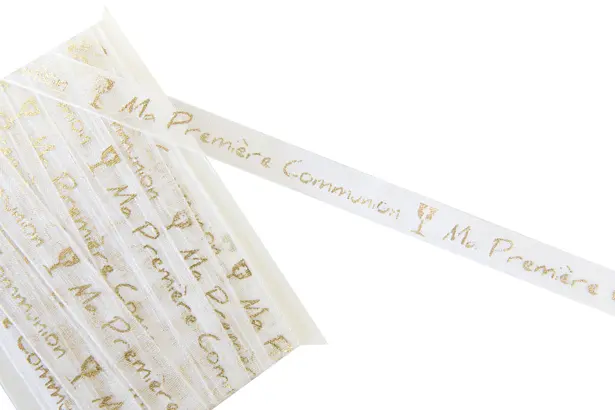 Ruban Organza  » Ma première Communion  » – Or- 5 M