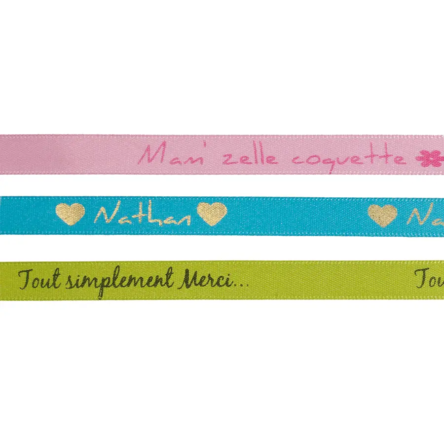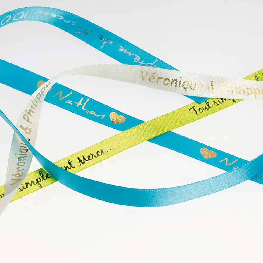 Une alternative originale aux étiquettes à dragées pour vos contenants, vos menus, vos ronds de serviette… Personnalisez vos rubans avec prénom(s) et la date de l’événement. Qu’il s’agisse d’un mariage, d’un baptême, d’une communion, d’un anniversaire… le ruban personnalisé sera être un atout pour un souvenir inoubliable !