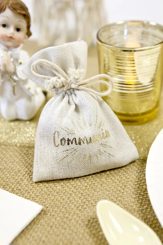Sac à Dragées en lin « Communion » Or – Lot de 4