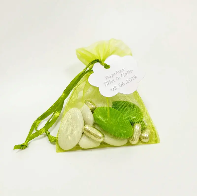 Sac à dragées organza – Vert anis – Lot de 10