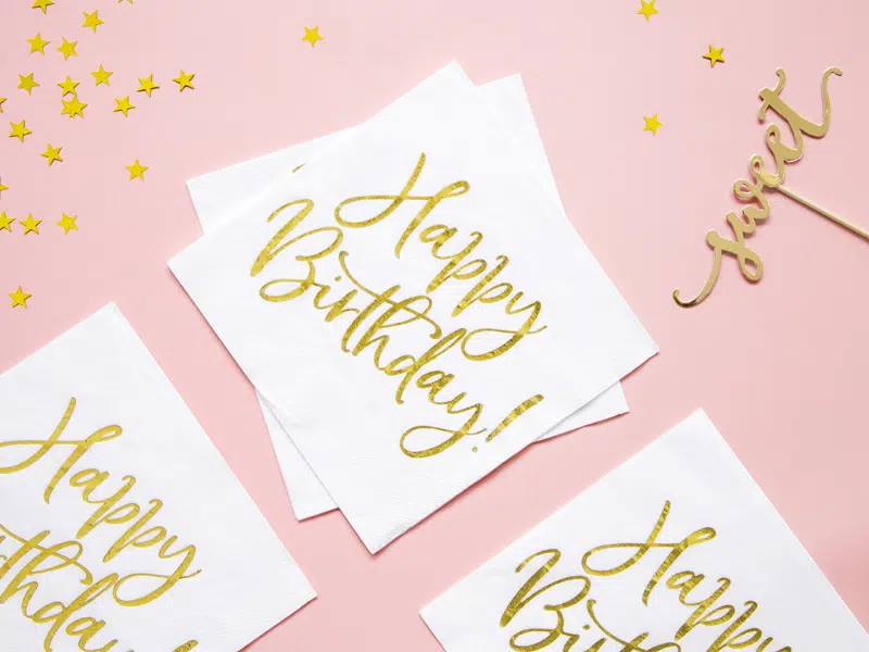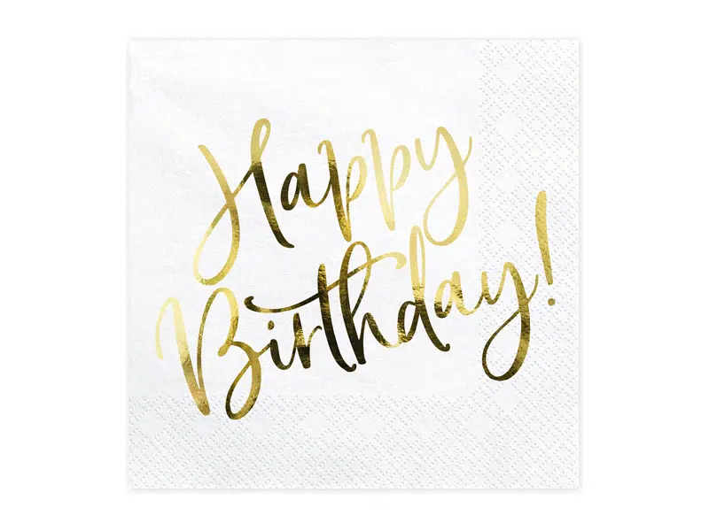 Ce lot de 20 serviettes « Happy Birthday » avec une impression de couleur Or sublimera votre décoration d’anniversaire.