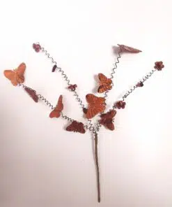 Magnifique bouquet sur tige de papillons et petites fleurs. Le bouquet mesure environ 12 cm de hauteur (sans la tige qui est à insérer au centre). Le « bouquet » est composé de 4 tiges ( 2 tiges : avec 4 papillons sur chacune des tiges et 2 autres tiges : avec deux fleurs et deux feuilles sur chacune de ces 2 tiges)