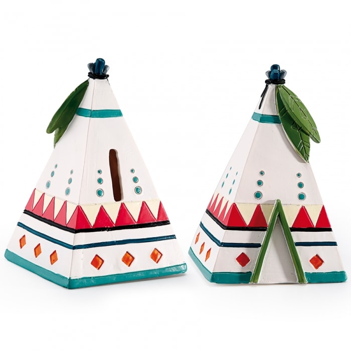 Superbe tirelire en forme de Tipi. Dragées baptême anniversaire thème animaux de la forêt . Découvrez toute la collection thème forêt.