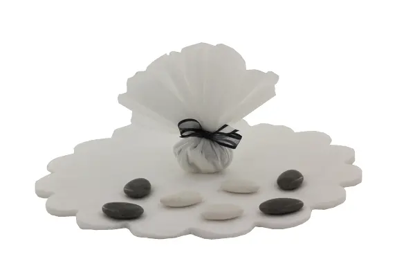 Ballotins à dragées, tulle matière  intissé .  Ce contenant à dragées sobre peut être personnalisé en ajoutant un accessoire (fleur, papillon, plumes…) et une étiquette. Pensez au ruban satin pour fermer votre ballotin.