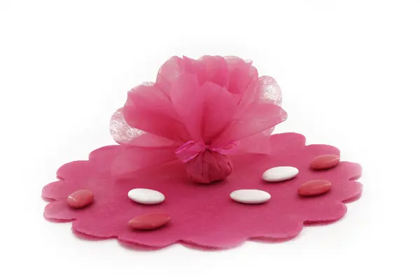 Ballotins à dragées, tulle matière  intissé .  Ce contenant à dragées sobre peut être personnalisé en ajoutant un accessoire (fleur, papillon, plumes…) et une étiquette. Pensez au ruban satin pour fermer votre ballotin.