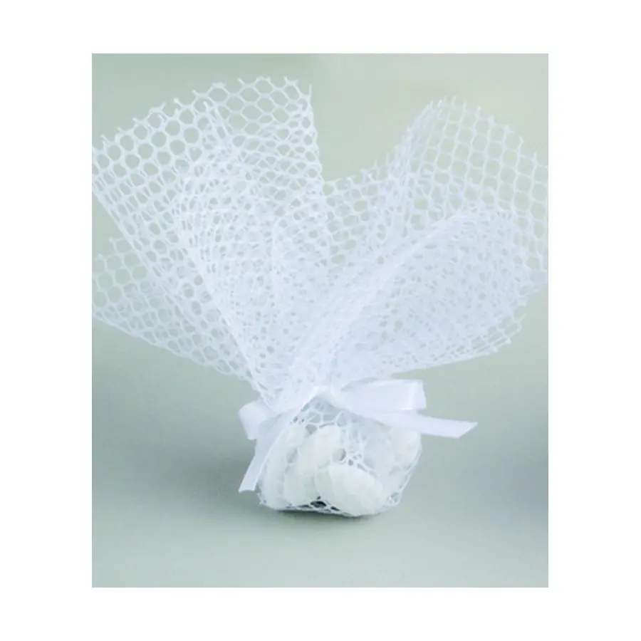 Ce contenant n’est pas apte au contact alimentaire. Pour éviter que les dragées entrent en contact direct avec le contenant en tissu, nous vous recommandons de prendre une tulle transparente que vous pourrez insérer à l’intérieur du contenant afin de protéger vos dragées.