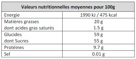 fruits à coque, gluten, oeuf, lait, arachides, soja.