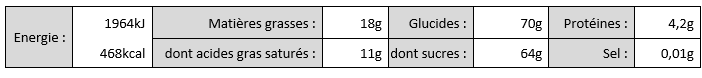 Valeurs nutritionnelles moyennes pour 100g